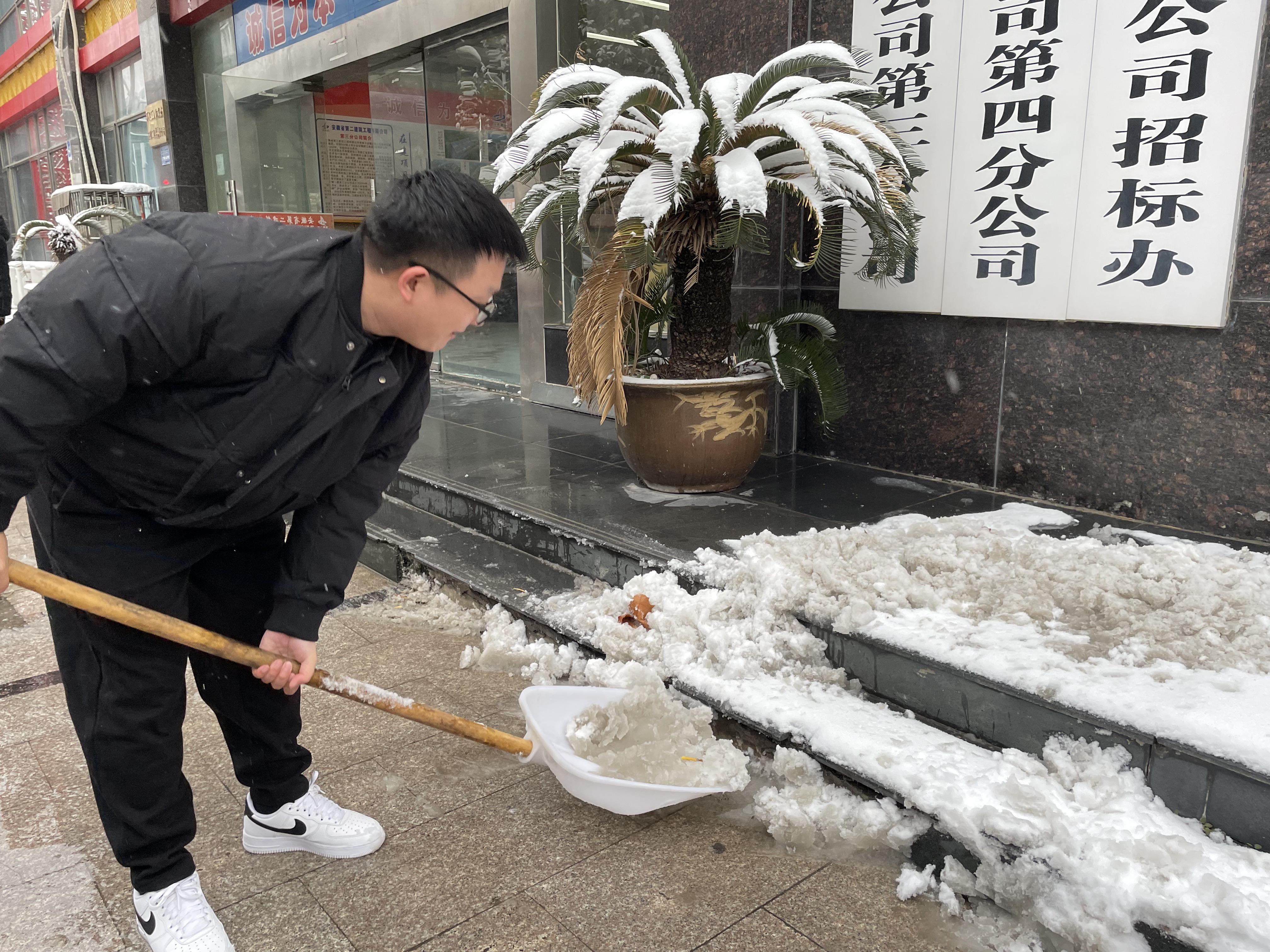 12月18日,合肥市迎來大范圍降雪,雪花飄舞,大地萬物銀裝素裹。與此同時也給人們的生活出行帶來諸多不便,為了確保群眾出行方便、安全,建工二建第四公司團支部以雪為令、聞雪而動,積極開展清雪除冰行動。