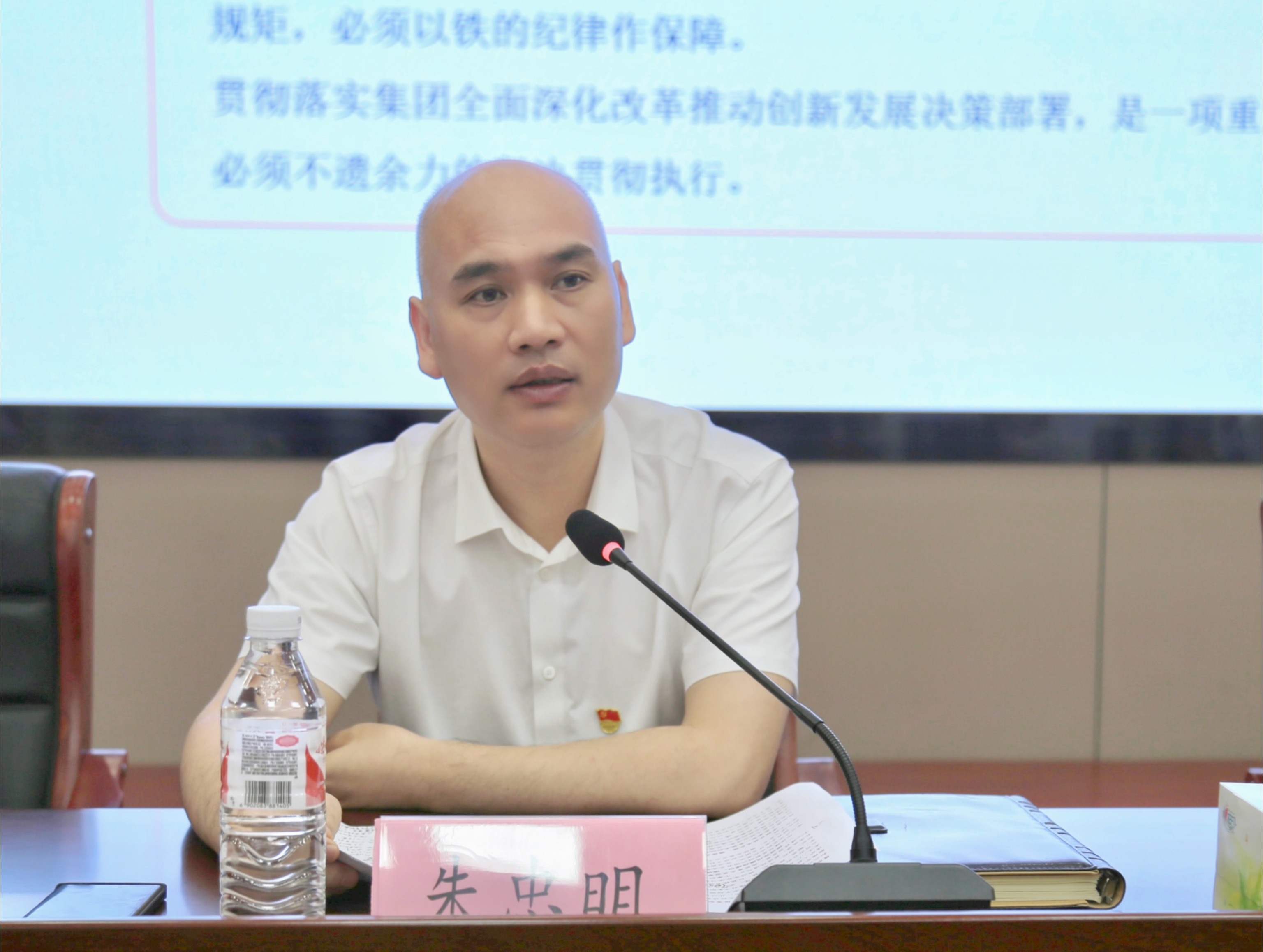 朱忠明作題為《遵規守紀 嚴于律己 以身作則 營造風清氣正、干事創業的良好氛圍》專題黨課,從四個方面展開:一是扎實開展黨紀學習教育,強化黨員干部紀律意識。二是紀律建設要融入企業治理,推進黨風廉政建設。三是認清形勢任務,營造風清氣正的干事氛圍。四是堅持真抓實干,扎實做好年度各項重點工作。
