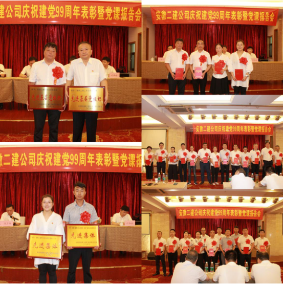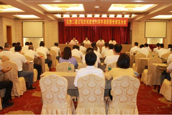 為隆重慶祝中國共產黨成立99周年,進一步加強基層黨組織建設和黨員隊伍建設,6月30日上午,安徽二建公司黨委召開慶祝建黨99周年表彰暨黨課報告會。公司領導、機關全體黨員、所屬單位領導班子成員(黨員)、受表彰的先進基層黨組織代表、優秀共產黨員、優秀黨務工作者、新冠肺炎疫情防控工作先進集體和先進個人參加會議。會議由公司黨委副書記、紀委書記仇多維主持。