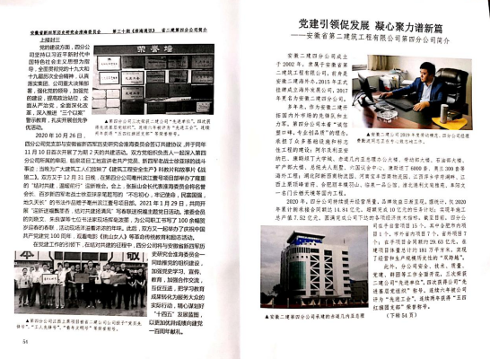 近日,由安徽省新四軍歷史研究會淮海委員會主辦的《淮海通訊》雜志第三十期刊登了安徽二建四分公司簡介,同時(shí)介紹了雙方特色亮點(diǎn)共建活動。
