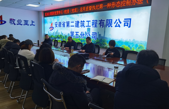 近期,為認(rèn)真落實(shí)全面從嚴(yán)治黨主體責(zé)任和監(jiān)督責(zé)任,踐行“四種形態(tài)”,強(qiáng)化“第一種形態(tài)”運(yùn)用。安徽二建公司所屬各單位組織學(xué)習(xí)了《黨委(黨組)運(yùn)用監(jiān)督執(zhí)紀(jì)第一種形態(tài)工作辦法(試行)》。