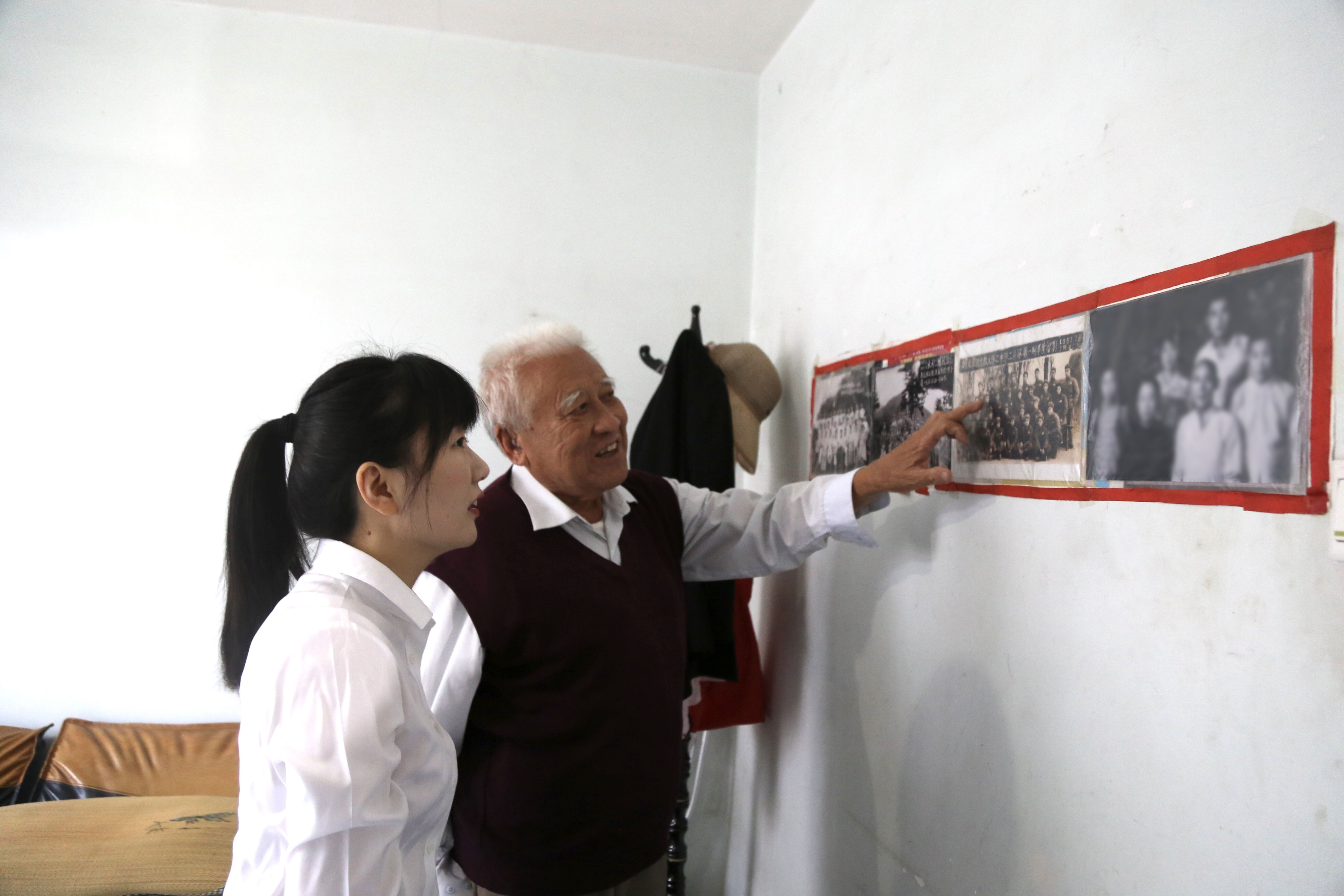 10月8日,在二建公司老紀委副書記張立法的家中,我們看到臥室的兩面墻上貼滿了老照片,老書記興致勃勃的向我們介紹起每一張照片的背后故事。老書記指著一張解放軍16步校皖北軍區政治部文教大隊合照回憶到:”這些都是我們當年參加抗美援朝的戰友,很多都不在世了,當年戰爭苦啊,去了前線的戰士很多都沒能回來…。你看這是我年輕時候,現在老了,看見國家強大了,公司越來越好,看見你們年輕的一代我很欣慰…”