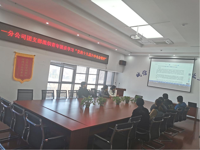 黨旗所指就是團旗所向,12月3日上午,第一分公司團支部在會議室組織機關青年團員學習十九屆六中全會精神。
